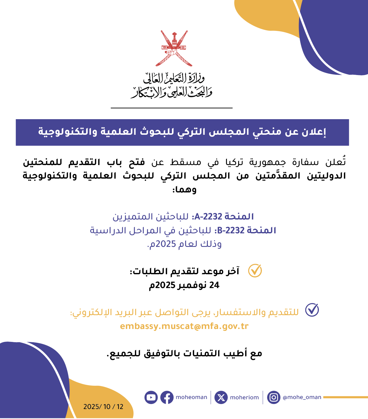 إعلان عن منحتي المجلس التركي للبحوث العلمية والتكنولوجية.